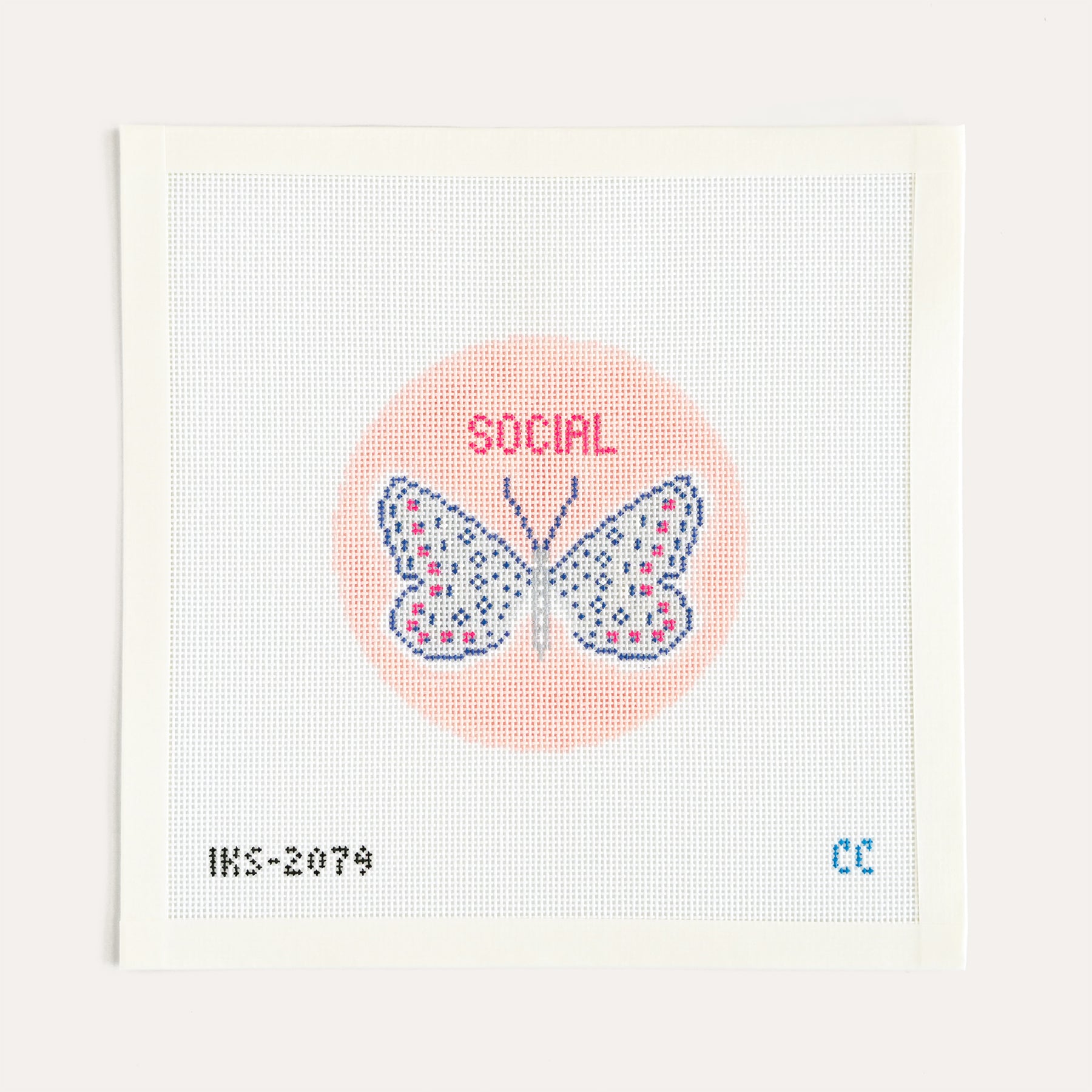 Full of color and charm, this Social Butterfly Ornament needlepoint canvas by Initial K Studio adds a lively touch to your stitching collection. Measuring 4" x 4" on 18 mesh, it’s a bright and cheerful design that’s perfect for finishing as an ornament or gift.