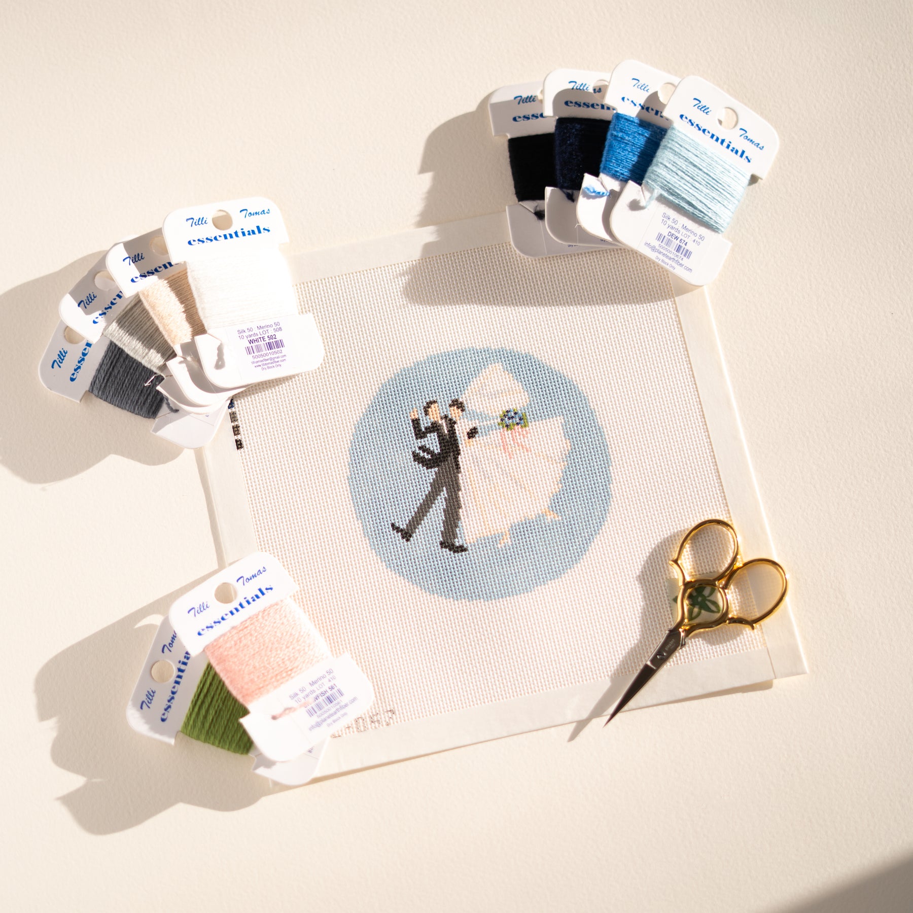 The Newly Weds Needlepoint Canvas is a timeless design created to mark life’s most meaningful celebrations. With a romantic and classic motif, this canvas is well suited for commemorating weddings, engagements, or anniversaries in a personal and lasting way. Painted on 18 mesh canvas, the design area measures 4 x 4 inches. This piece works beautifully as an ornament, a small framed keepsake, or a special gift meant to be stitched and treasured.
