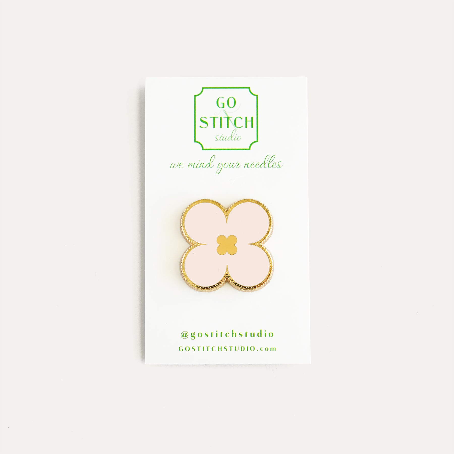 Pink clover needle minder by Go Stitch Studio with secure magnet