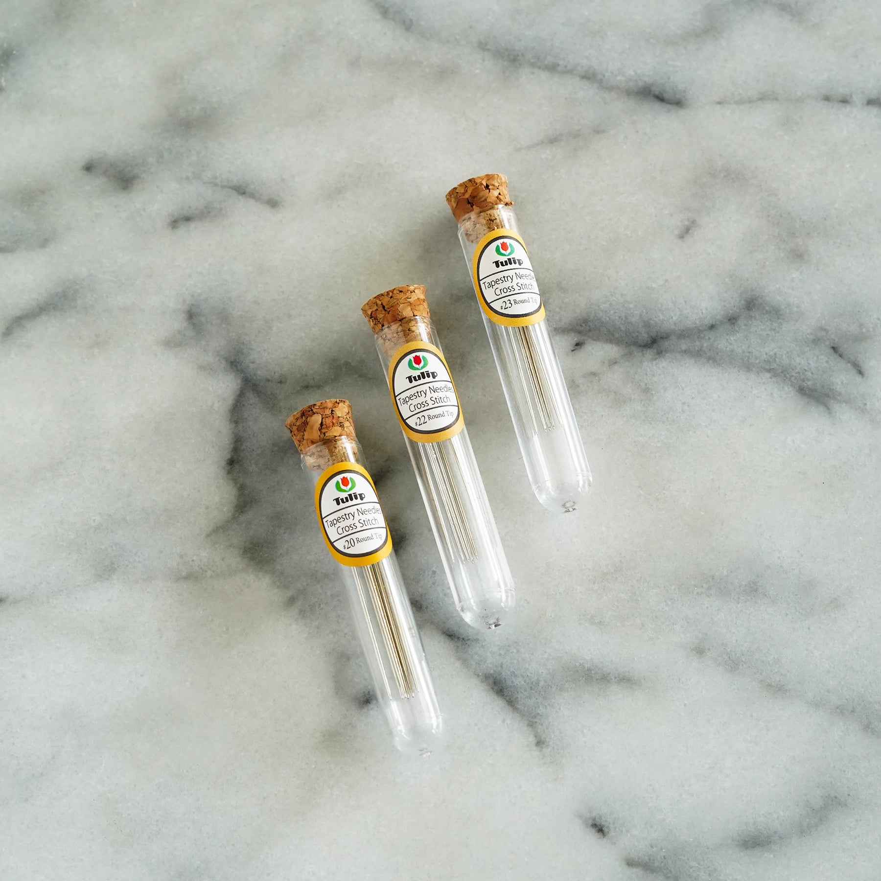 Tulip Tapestry Needles Size 23 are slightly smaller than Size 22 and offer a lighter, finer feel for 18 mesh needlepoint canvas. Made in Hiroshima, Japan, each package contains six polished needles designed for smooth, precise stitching. The round tips protect threads while the flexible body prevents bending. Ideal for stitchers who prefer a more delicate touch, these needles deliver a perfect blend of comfort and control.