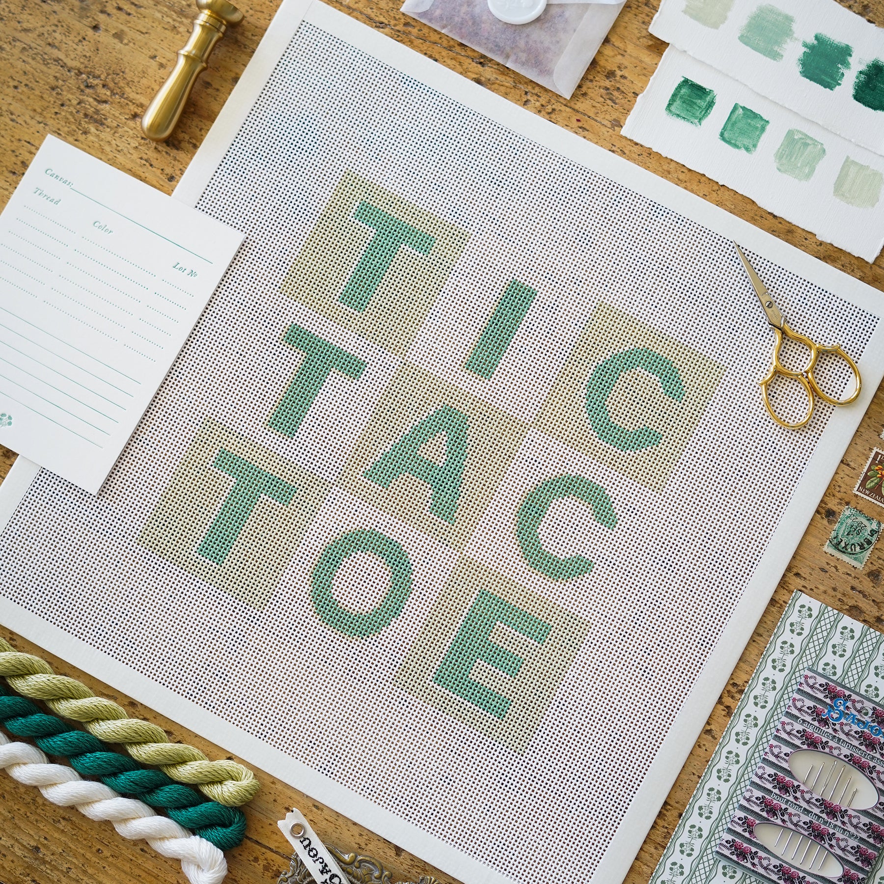 Green Tic-Tac-Toe needlepoint canvas by The Needlepoint Vault on 13 mesh